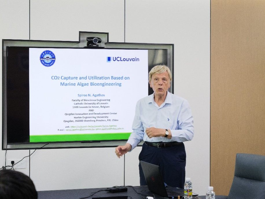 Agathos教授以《基于海洋藻类生物工程的CO₂捕获与利用》为题作学术报告。他指出,随着全球气候变化与二氧化碳排放问题日益严峻,海洋微藻作为生物多样性极为丰富的生物群体,因其卓越的碳固定能力已成为国际学术界关注的热点。Agathos教授系统介绍了该领域的前沿进展,并分享了其团队在海洋微藻生物技术方向的创新成果与研究经验。